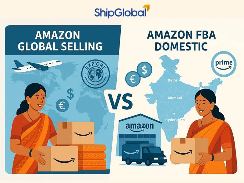 Global Selling helps you reach international customers on Amazon websites in other countries, while FBA Domestic focuses on selling to Indian customers through Amazon.in.